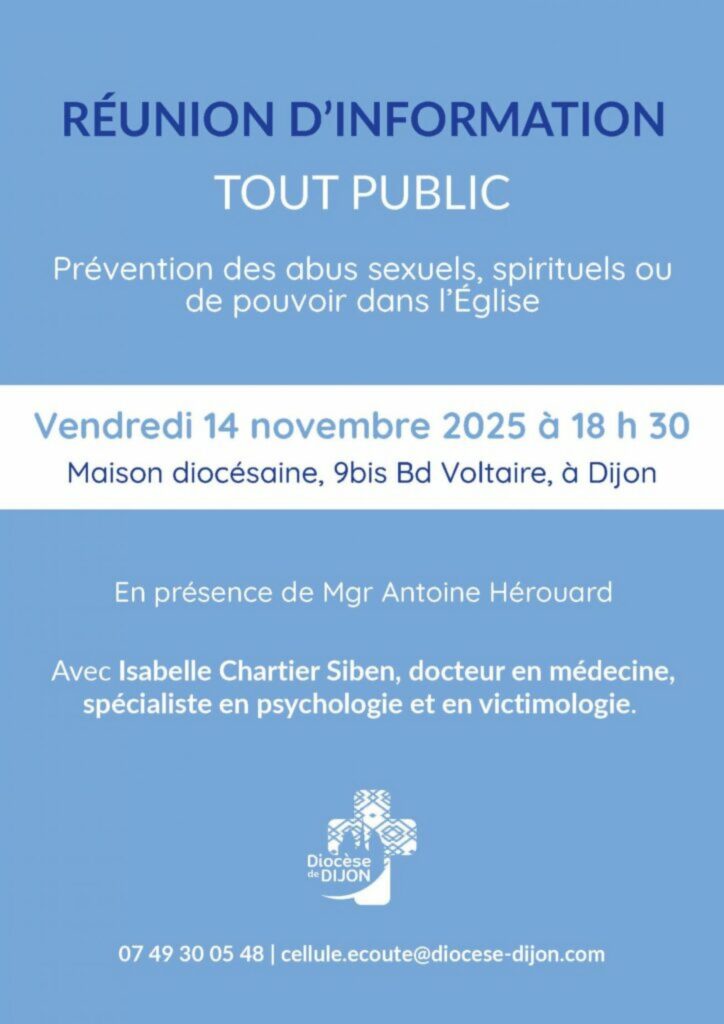 Cette rencontre, intitulée « Faire de l’Église une maison sûre », s’inscrit dans la volonté du diocèse de Dijon de poursuivre le travail de reconnaissance, d’écoute et de reconstruction engagé depuis plusieurs années. Elle offrira un espace d’échange et de réflexion sur la manière de rendre l’Église plus accueillante et sécurisante pour tous.