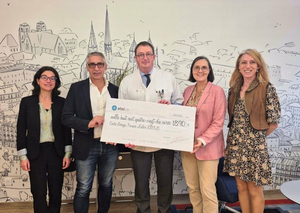 Le 3 novembre, le PDG d’Atol CD, Jean-Philippe Porcherot, accompagné d’Isabelle Dampenon, Directrice des Ressources Humaines, et d’Amélie Sirugue, Responsable Communication, ont procédé à la remise officielle du chèque au Centre Georges-François Leclerc. La direction a salué la mobilisation et l’esprit d’engagement des équipes.