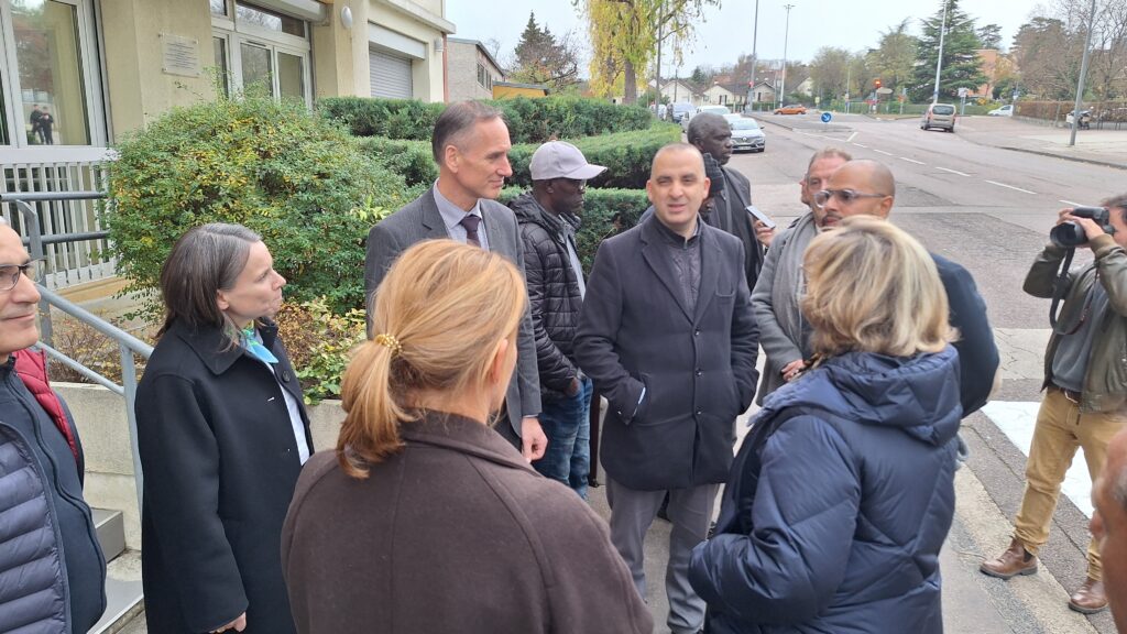 Plusieurs élus étaient présents, parmi lesquels Hamid El Hassouni, Franck Lehenoff et Massar N’Diaye, Françoise Tenenbaum aux côtés de la maire de Dijon Nathalie Hoenders et du directeur général d’Adoma Emmanuel Ballu.