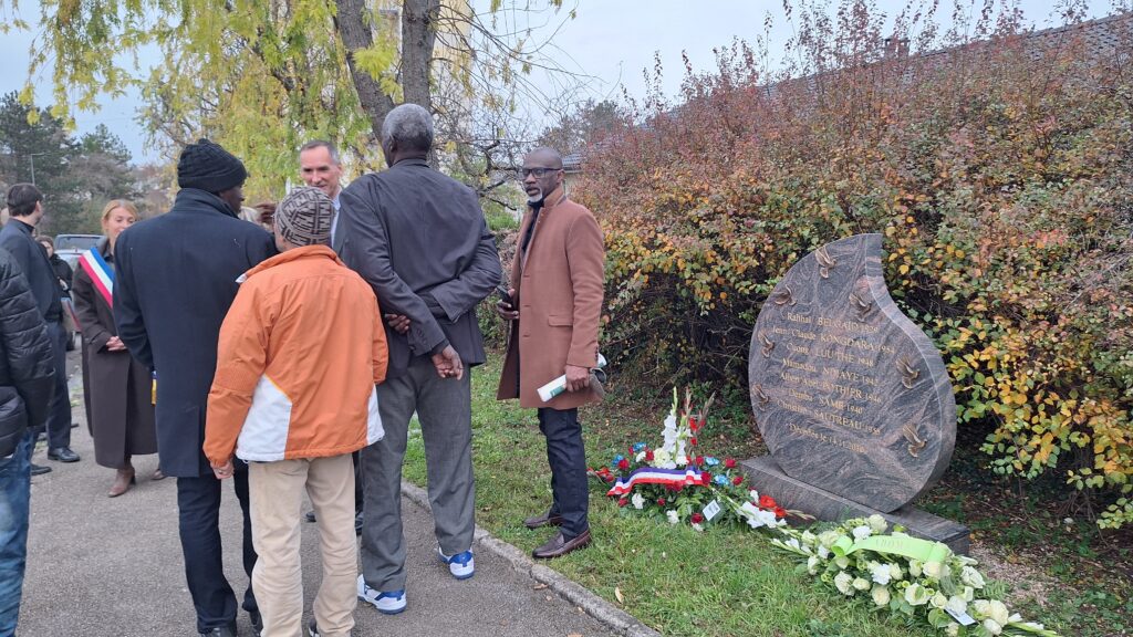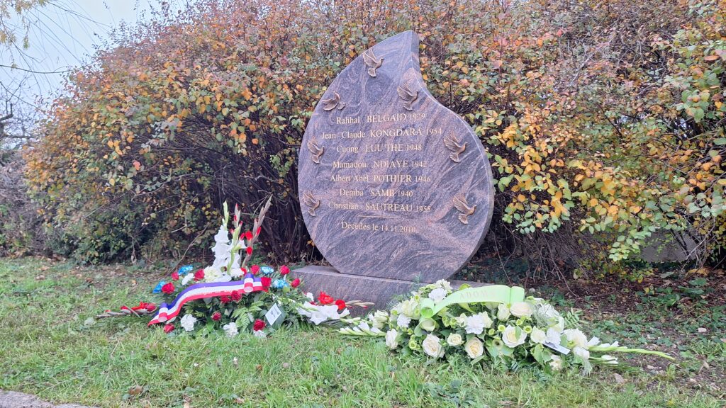 Après les prises de parole, un temps de silence a été observé devant la stèle. Des gerbes ont ensuite été déposées par les élus, les représentants d’Adoma et des proches des victimes.