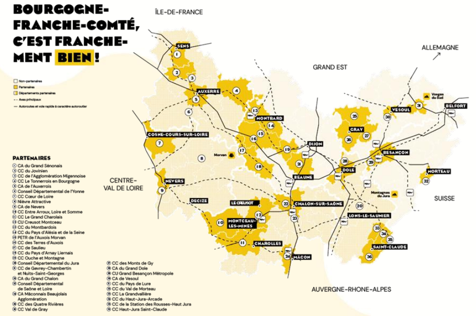- 35 collectivités partenaires, dont 4 départements (Yonne, Nièvre, Saône-et-Loire et Jura) et 31 intercommunalités,