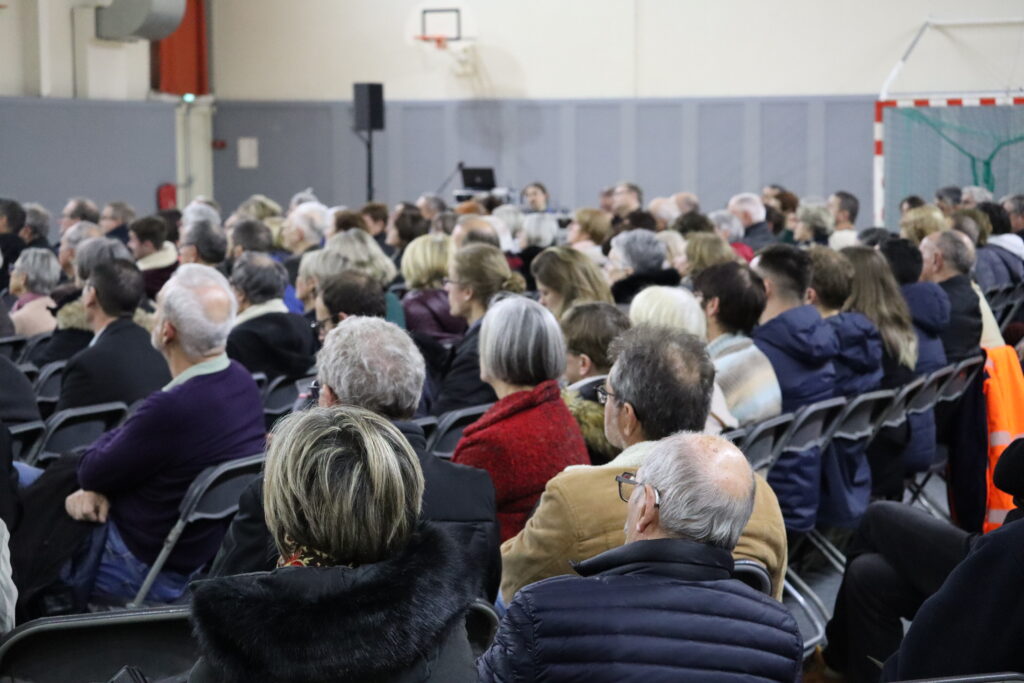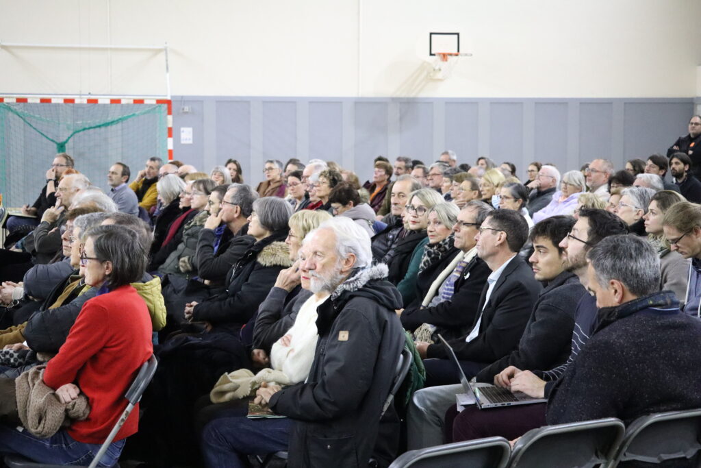 Plus de 150 habitants se sont déplacés ce mardi 2 décembre 2025 au gymnase des Bourroches. Dès l’accueil, l’ambiance donnait le ton : pas de verre de l’amitié, pas de moment convivial avant ou après la présentation. L’avocat de la Ville avait recommandé de supprimer toute forme de collation afin d’éviter qu’un geste considéré comme habituel en temps normal ne soit interprété comme un avantage offert aux électeurs.