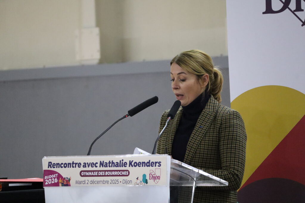Elle a décrit une « situation mondiale marquée par le bras de fer des grandes puissances », et critiqué une loi de finances « ballottée entre le gouvernement et le Parlement », rendant les projections budgétaires particulièrement incertaines. S’exprimant « au nom des maires de France », elle a dénoncé « un effort budgétaire disproportionné demandé aux collectivités » et regretté que Dijon demeure « une ville sous-dotée », recevant « dix millions d’euros de moins que les villes comparables ».