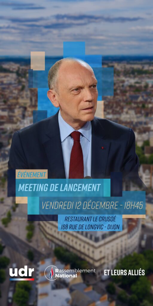Le Rassemblement Dijonnais donnera officiellement le coup d’envoi de sa campagne pour les élections municipales lors d’une réunion publique organisée le vendredi 12 décembre, à 18 h 45, au restaurant Le Crusoé, situé rue de Longvic à Dijon.
