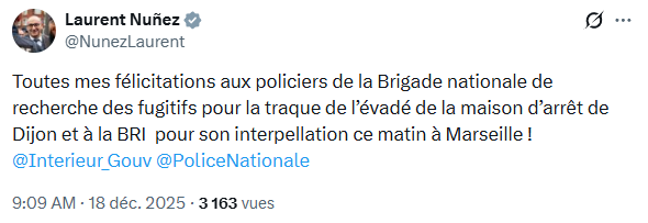 Le jeune homme a été localisé tôt dans la matinée dans un quartier du nord de Marseille, où il aurait trouvé refuge ces derniers jours dans un appartement servant de cache. L’opération d’interpellation aurait été menée sans incident.