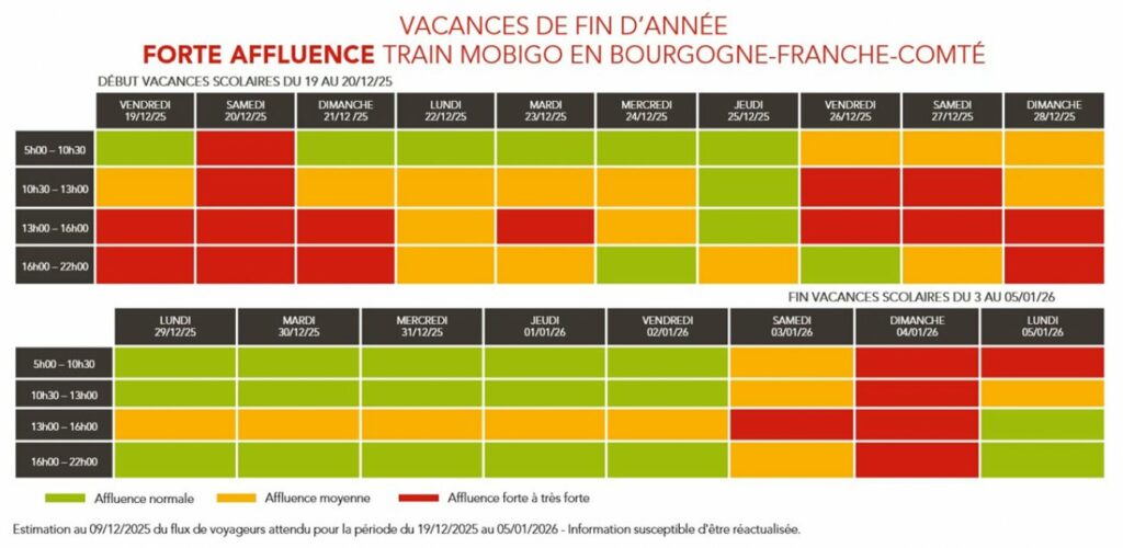 Face au pic annuel de déplacements attendu pour les fêtes de fin d’année, SNCF Voyageurs met en place un dispositif d’ampleur à la demande de la Région Bourgogne–Franche-Comté. Objectif : garantir des trajets plus fluides et sereins aux utilisateurs des Trains Mobigo, alors qu’une affluence importante est prévue au départ et à destination de la région.