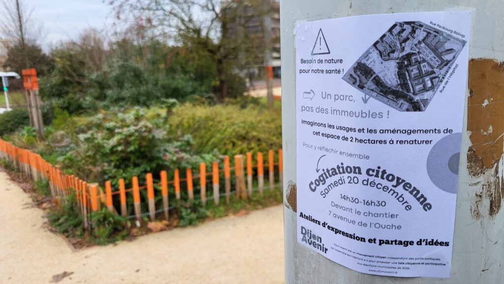 Sur la parcelle de deux hectares incluse dans la nouvelle phase d’aménagement, le mouvement confirme qu’une association locale a déposé un recours gracieux contre le permis accordé le 4 septembre à Eiffage. Dijon Avenir soutient cette initiative et défend, à la place du programme immobilier, un vaste espace renaturé, pensé comme zone de fraîcheur face aux fortes chaleurs à répétition. Pour eux, l’enjeu est clair : « Apporter un véritable espace de nature dans un quartier déjà très densifié. »