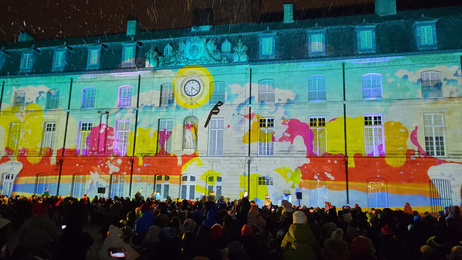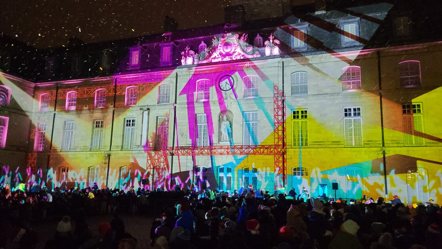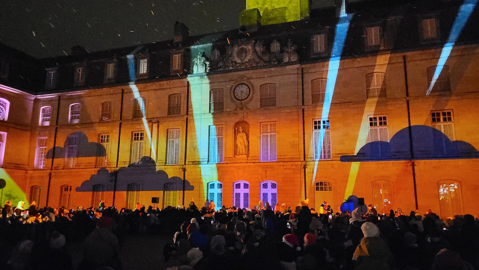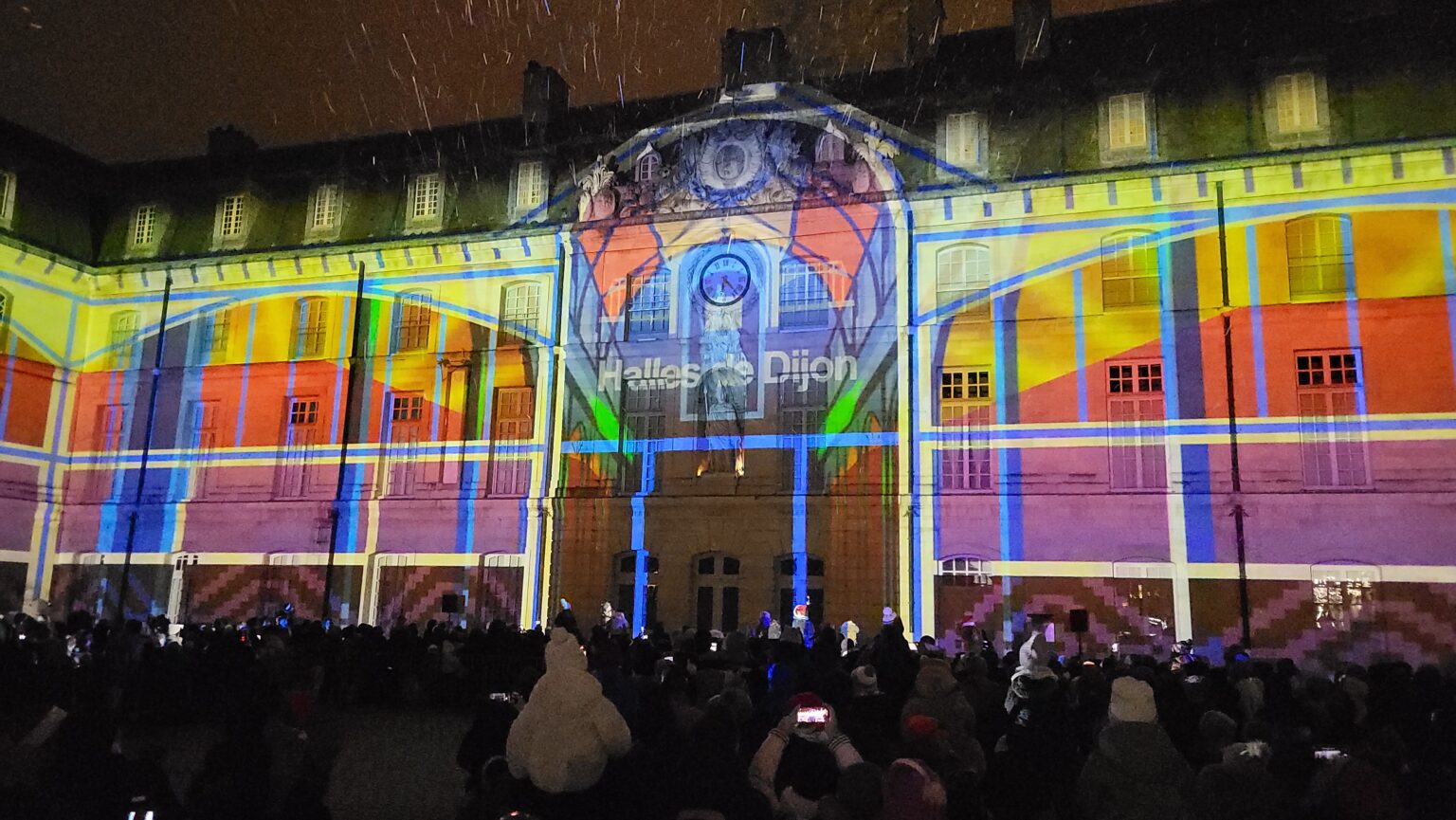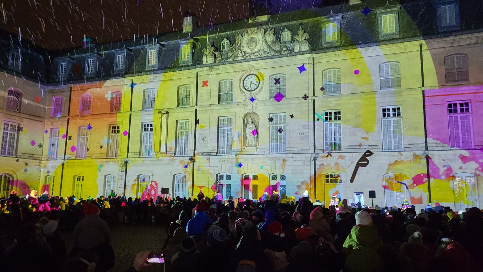 À 18 h 30 précises, le Père Noël est apparu au sommet de la tour Philippe le Bon. Selon les services municipaux, 5 000 personnes étaient alors rassemblées devant l’Hôtel de Ville. Au fil de sa descente de 46 mètres, il a été acclamé par une foule enthousiaste, avant de rejoindre le sol pour distribuer papillotes et places de manèges. Nathalie Koenders, maire de Dijon, l’a accueilli aux côtés de plusieurs élus municipaux.