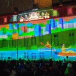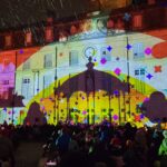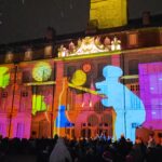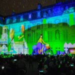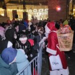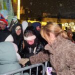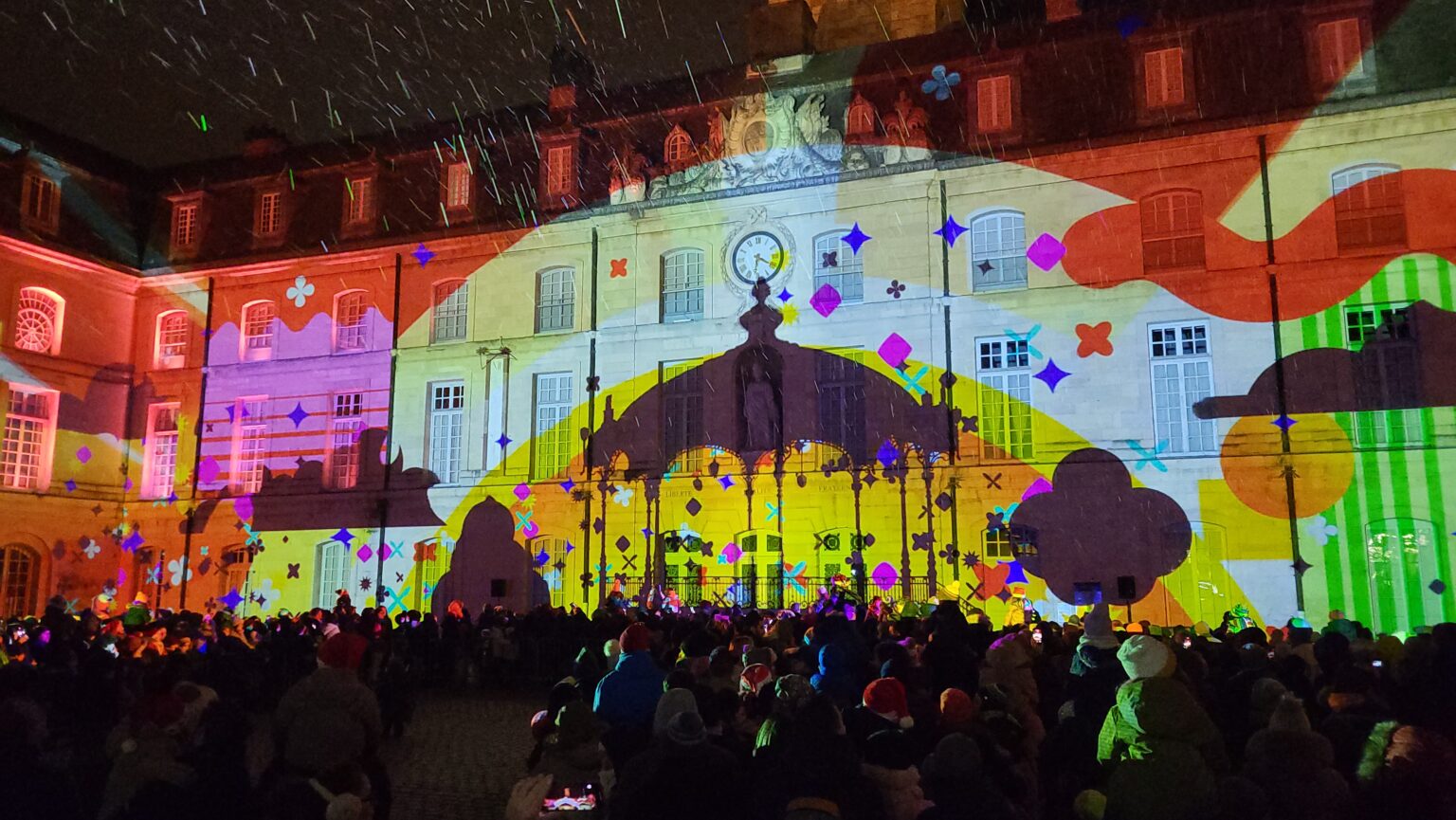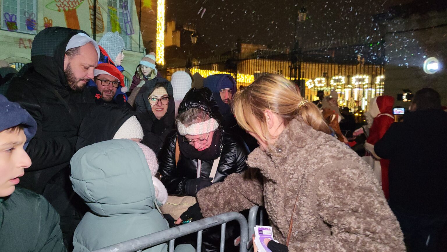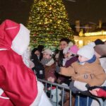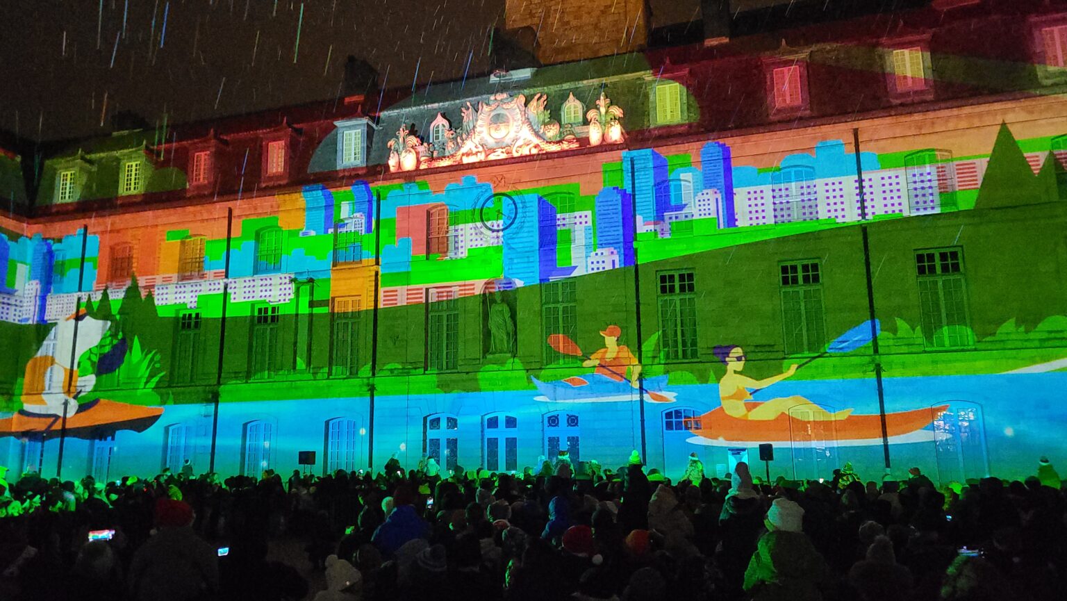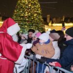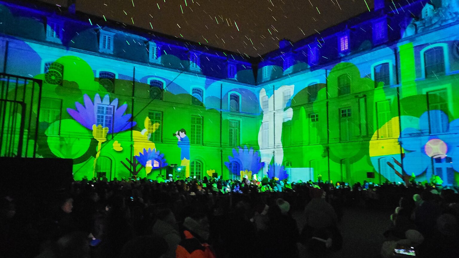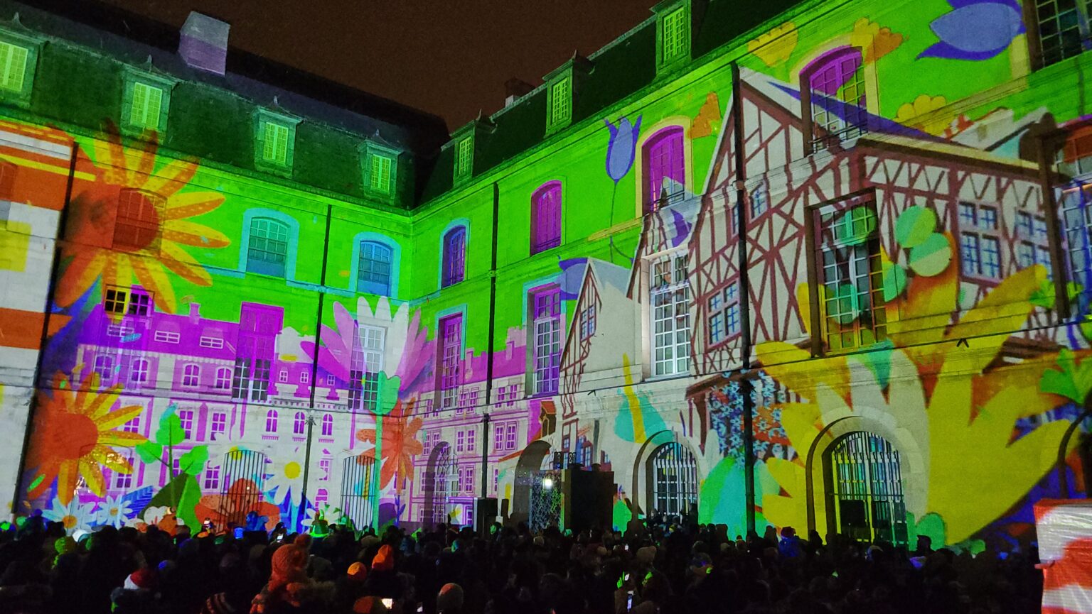 À 18 h 30 précises, le Père Noël est apparu au sommet de la tour Philippe le Bon. Selon les services municipaux, 5 000 personnes étaient alors rassemblées devant l’Hôtel de Ville. Au fil de sa descente de 46 mètres, il a été acclamé par une foule enthousiaste, avant de rejoindre le sol pour distribuer papillotes et places de manèges. Nathalie Koenders, maire de Dijon, l’a accueilli aux côtés de plusieurs élus municipaux.