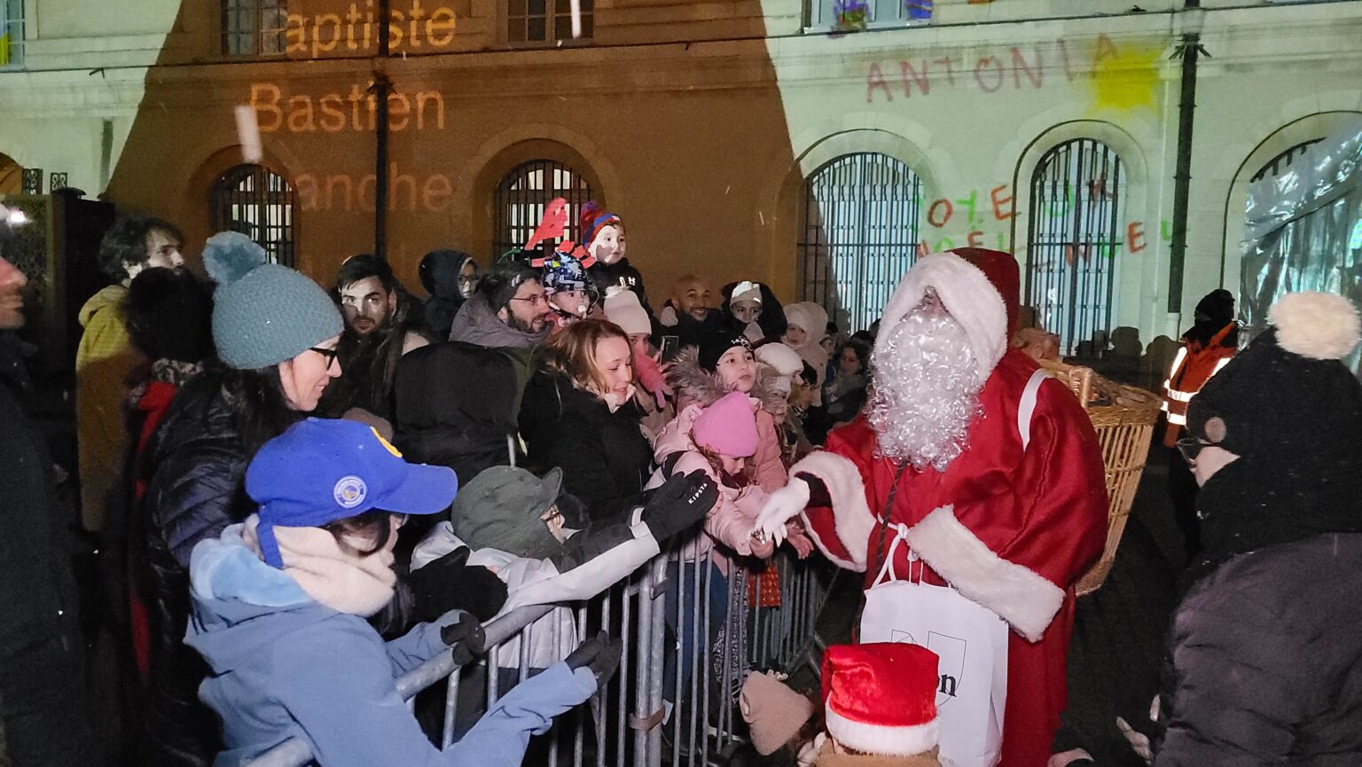Malgré un vent mordant et des températures à peine positives, l’infatigable vieillard en rouge a glissé le long de la tyrolienne avec assurance pour rejoindre les enfants massés au pied de l’édifice, impatients de recevoir papillotes et douceurs de circonstance.