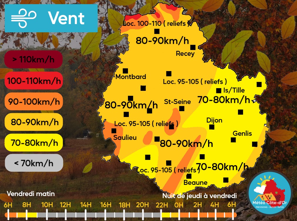 Selon Météo Côte-d’Or, le département ne sera pas concerné par les vents les plus violents de la tempête, mais restera fortement perturbé. De nouvelles pluies sont attendues en soirée et durant la première partie de la nuit, avant la mise en place d’un ciel de traîne alternant entre éclaircies et averses parfois orageuses, pouvant s’accompagner de fortes pluies, de grésil et localement de coups de tonnerre.