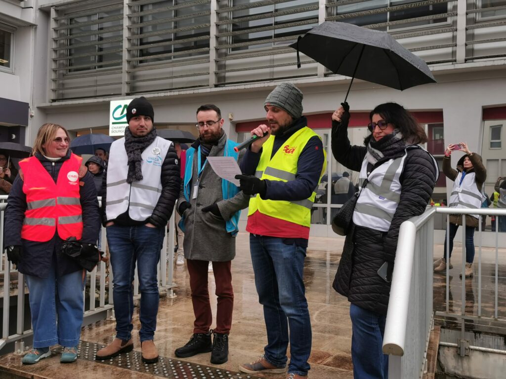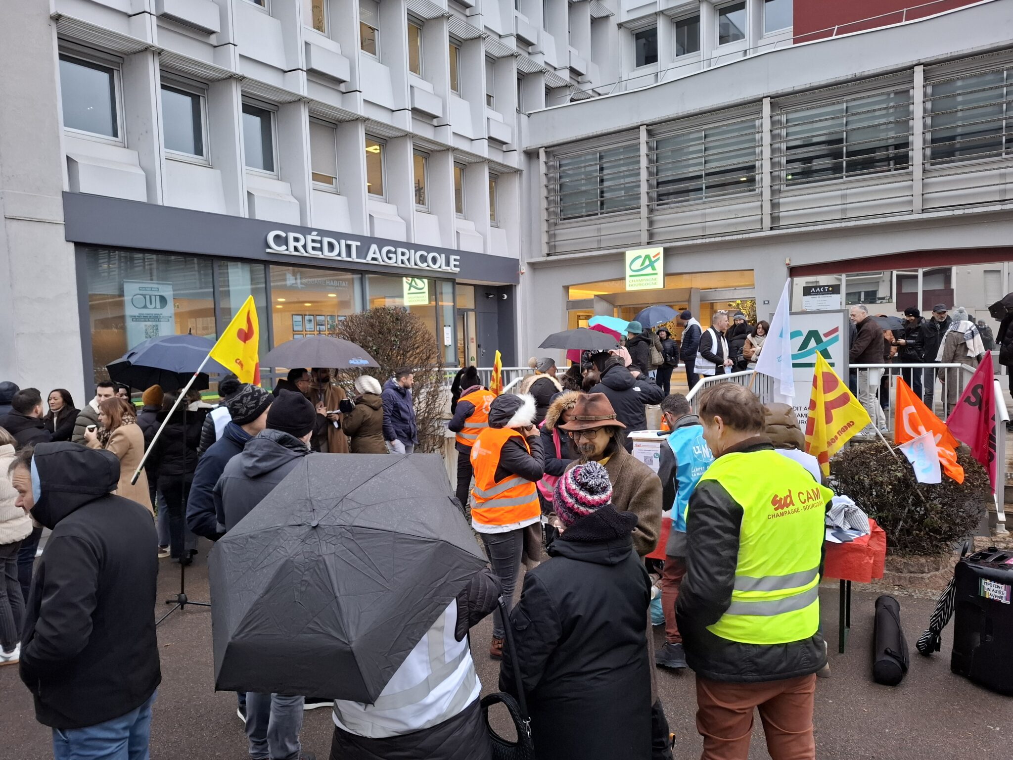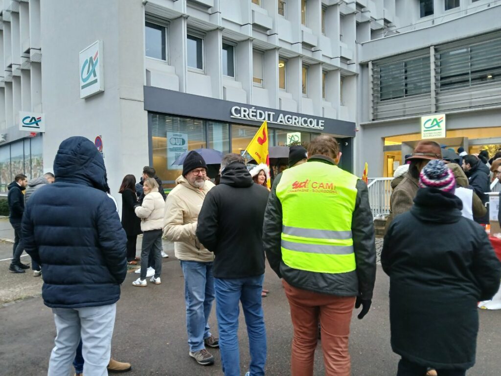 Les salarié·es de la Caisse régionale du Crédit Agricole Champagne-Bourgogne ont observé un débrayage ce jeudi 22 janvier 2026, dans le cadre d’un mouvement social national. Des rassemblements ont été organisés dès 8h30 devant les trois sièges de la caisse régionale, à Dijon, Troyes et Auxerre.