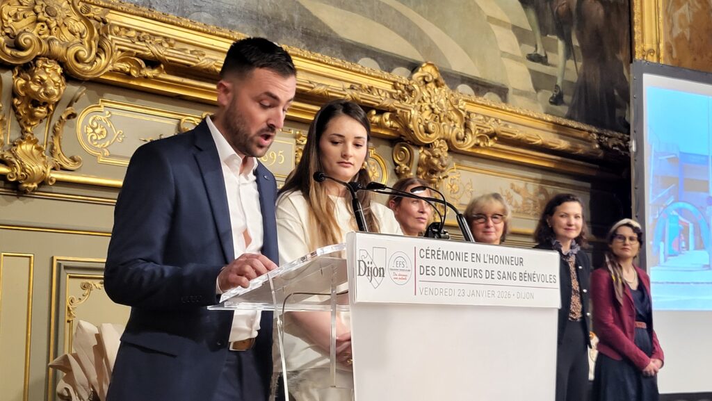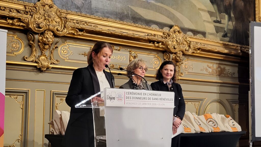 Plus de 300 personnes se sont réunies, ce vendredi soir, Salle des États du Palais des Ducs et des États de Bourgogne, pour une cérémonie dédiée aux donneurs de sang bénévoles de Dijon et à l’ensemble des acteurs de cette chaîne de solidarité. Autour de Nathalie Koenders, maire de Dijon, de Fanny Delettre, directrice régionale de l’Établissement Français du Sang (EFS) Bourgogne–Franche-Comté, et de l’Association des donneurs de sang bénévoles de Dijon, la Ville a souhaité saluer un engagement vital alors que les réserves de sang atteignent régulièrement des seuils critiques.