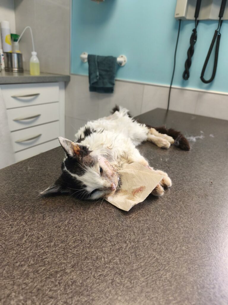 Tout débute lorsque Marlène Coin remarque la présence inhabituelle de l’animal devant chez elle. Très vite, son état interpelle. « Il était évident qu’il avait besoin de soins », explique-t-elle. Extrêmement affaibli, le chat présentait des signes visibles de souffrance.