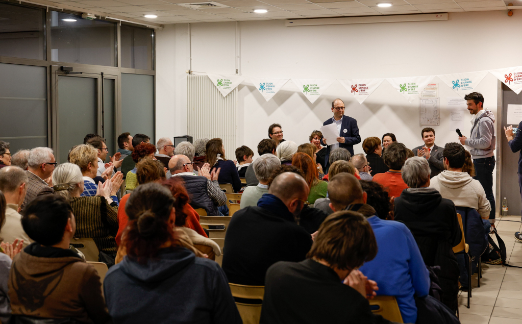 La campagne municipale dijonnaise a franchi un cap symbolique lundi 2 février avec la première réunion publique de la liste « Dijon change d’ère », qui revendique être la seule alliance unissant la gauche et les écologistes en vue du scrutin de mars prochain. Organisée salle Chambellan devant près d’une centaine de personnes, cette soirée inaugurale a servi de déclaration d’intention : installer un rapport de force politique avec la majorité sortante et présenter une alternative articulée autour de la transition écologique, de la justice sociale et du renouveau démocratique.