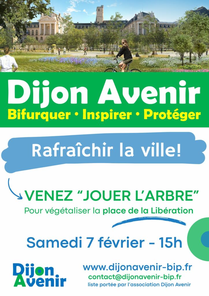 Face aux projections climatiques annonçant des épisodes de chaleur extrême pouvant atteindre 50 °C à Dijon d’ici 2050, le collectif estime qu’il est urgent d’adapter la ville. Leur proposition : planter massivement des arbres en centre-ville afin de créer des îlots de fraîcheur, y compris sur la place de la Libération.