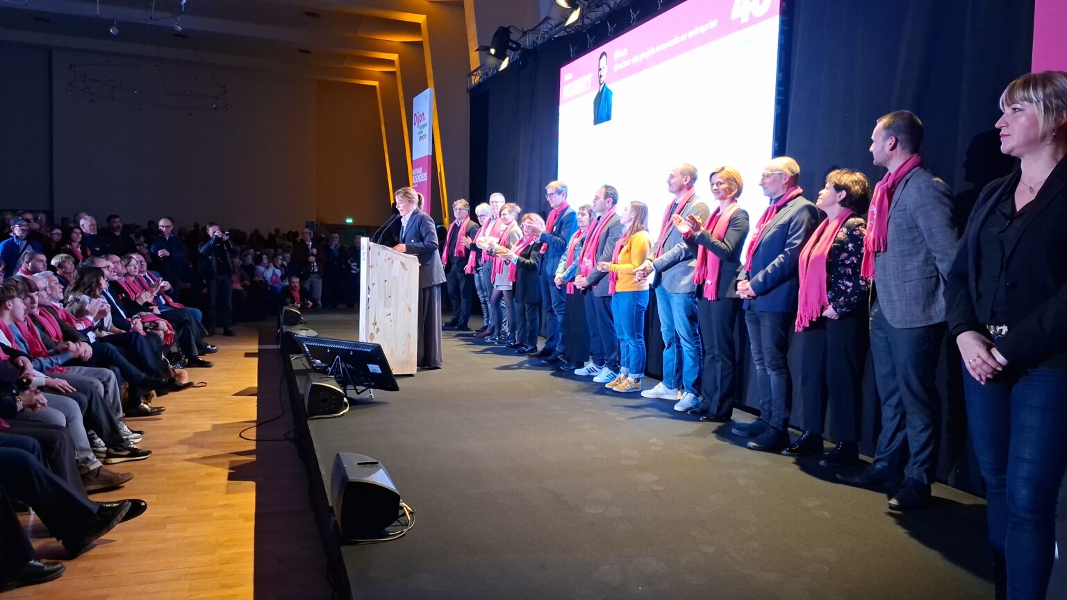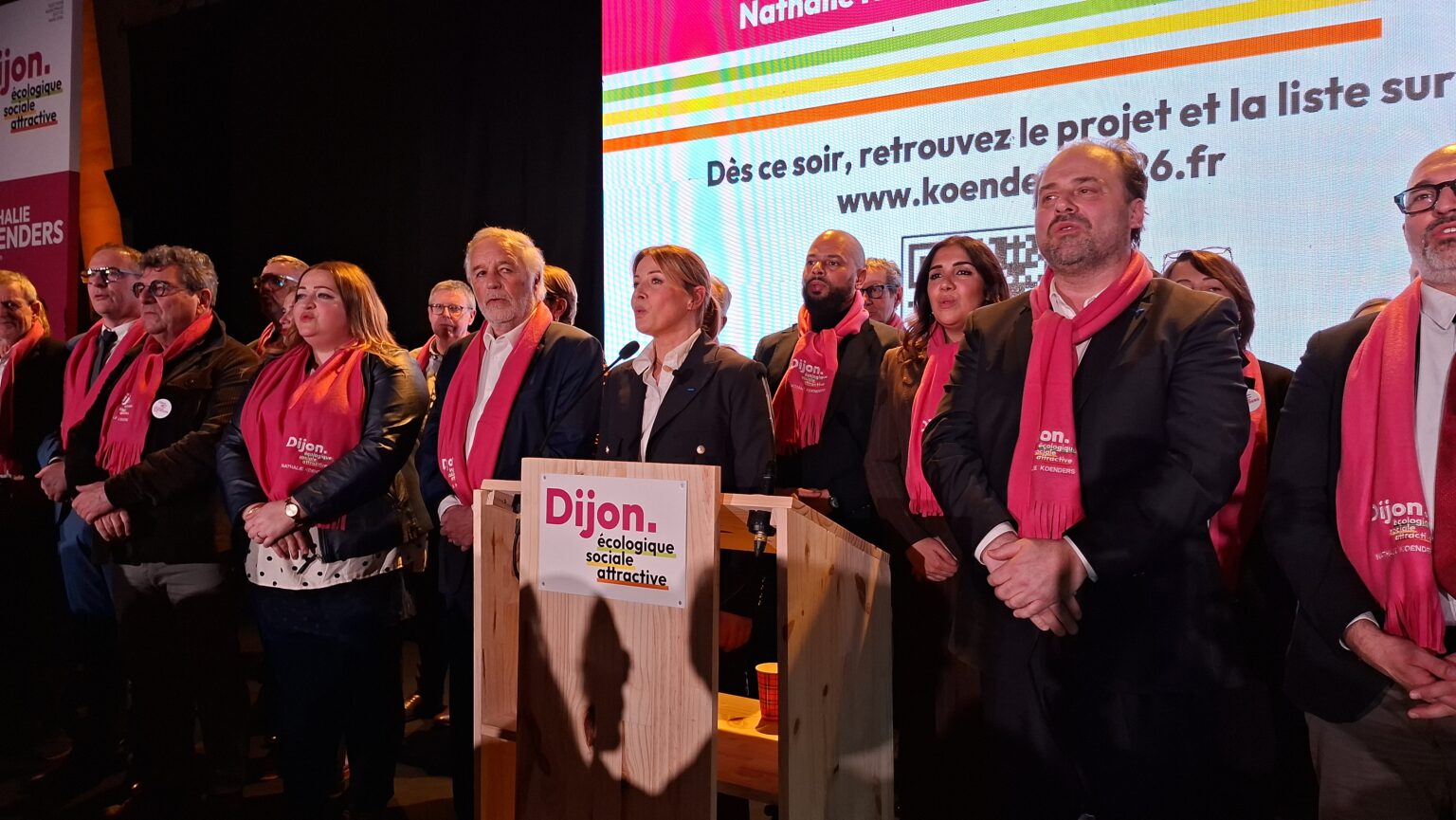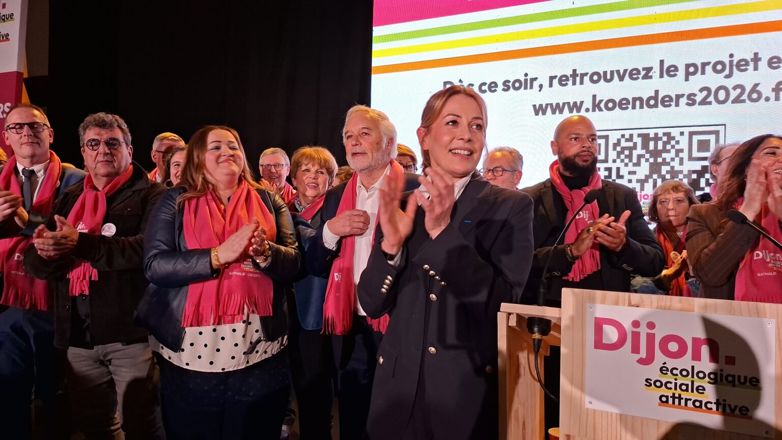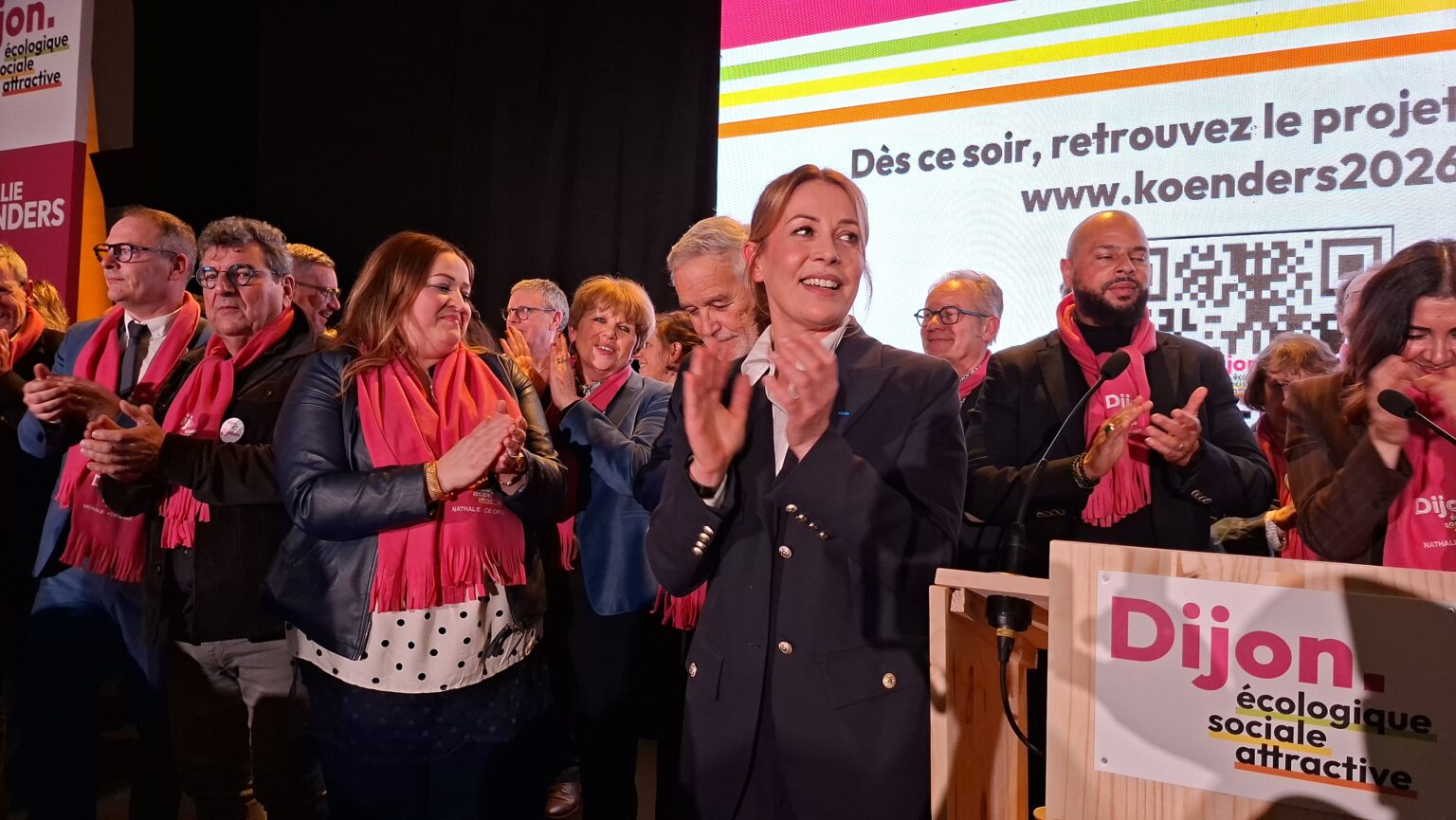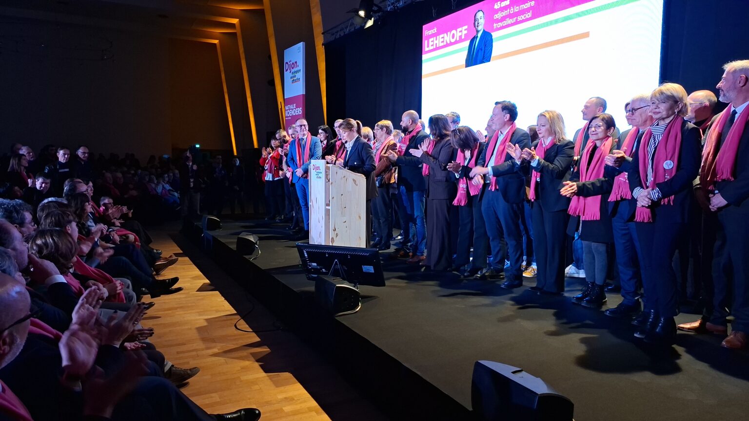 La salle Devosge a accueilli hier soir plus de 700 personnes venues assister au premier meeting de campagne de Nathalie Koenders. Dès les premières minutes, l’affluence a donné le ton : une salle comble, des équipes contraintes d’ajouter des chaises en urgence, et une atmosphère marquée par l’enthousiasme des participants.