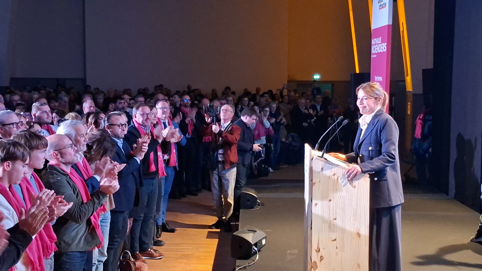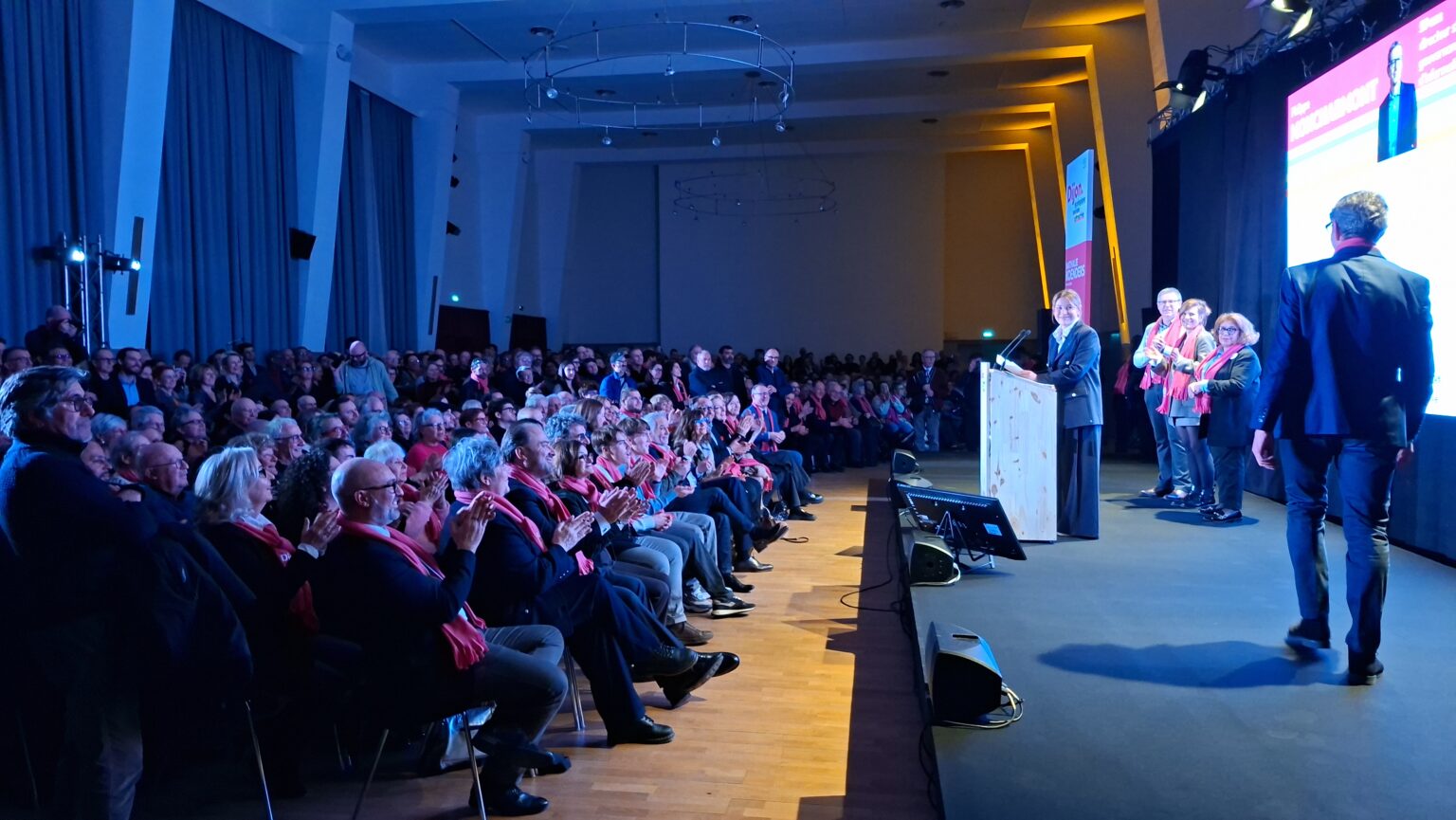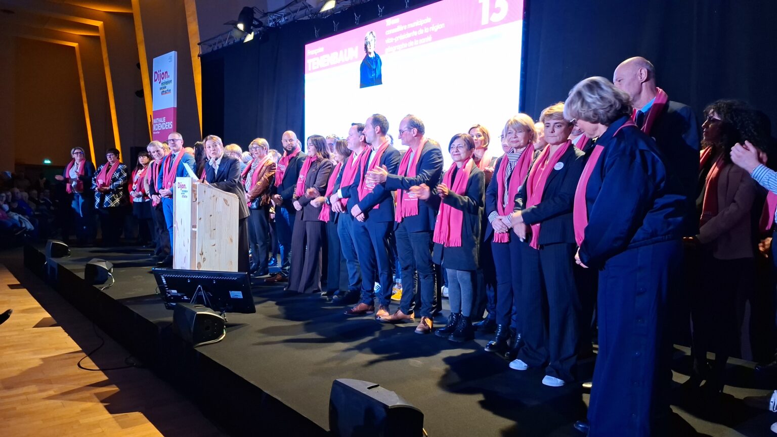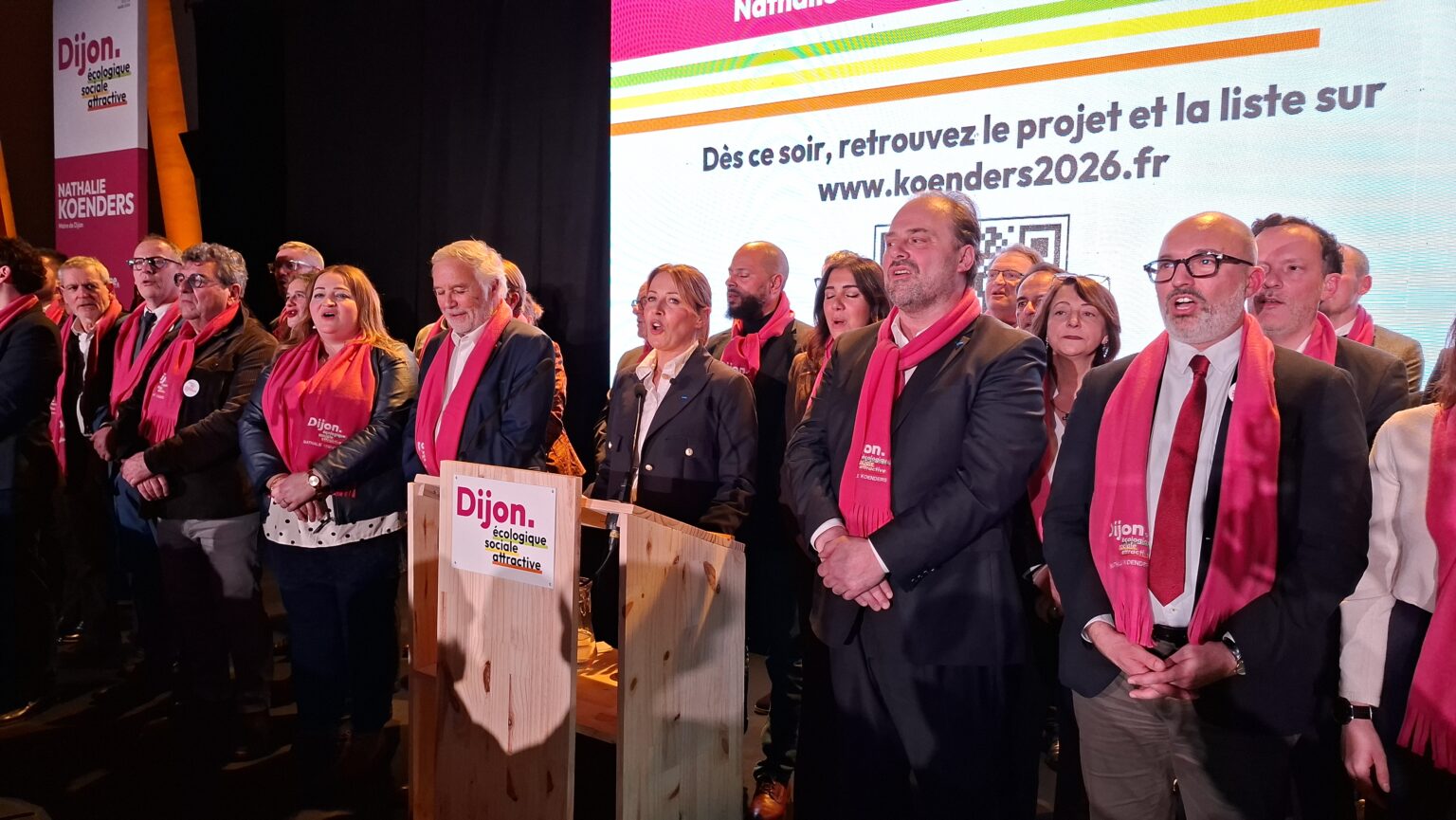 La salle Devosge a accueilli hier soir plus de 700 personnes venues assister au premier meeting de campagne de Nathalie Koenders. Dès les premières minutes, l’affluence a donné le ton : une salle comble, des équipes contraintes d’ajouter des chaises en urgence, et une atmosphère marquée par l’enthousiasme des participants.