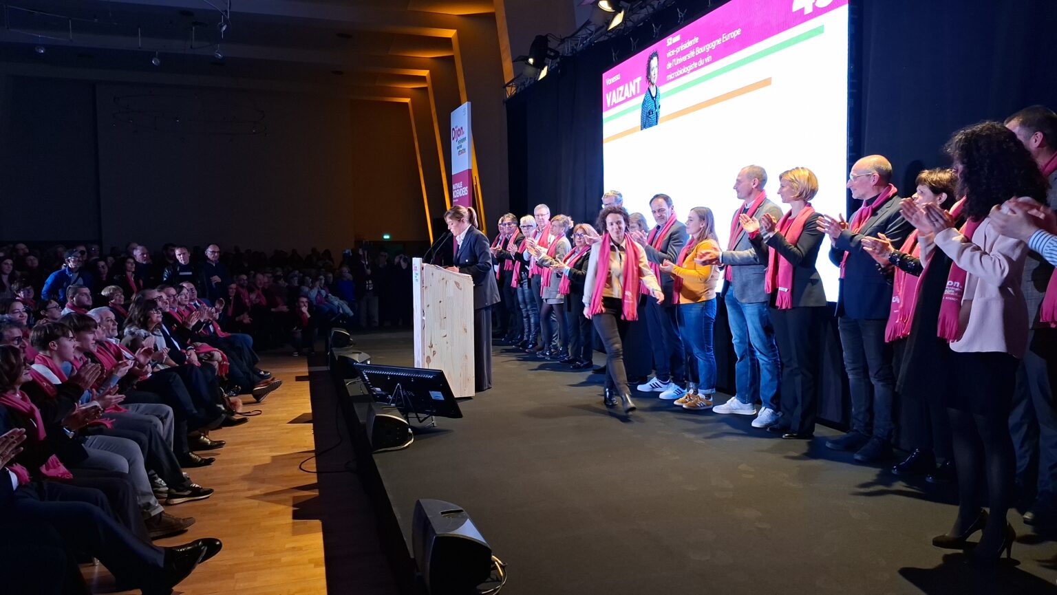 Tout au long de la soirée, le public a réagi chaleureusement aux interventions et aux temps forts du rassemblement. La présentation des colistiers, appelée un à un sur scène, a particulièrement illustré la dynamique collective revendiquée par la candidate, sous des applaudissements nourris.