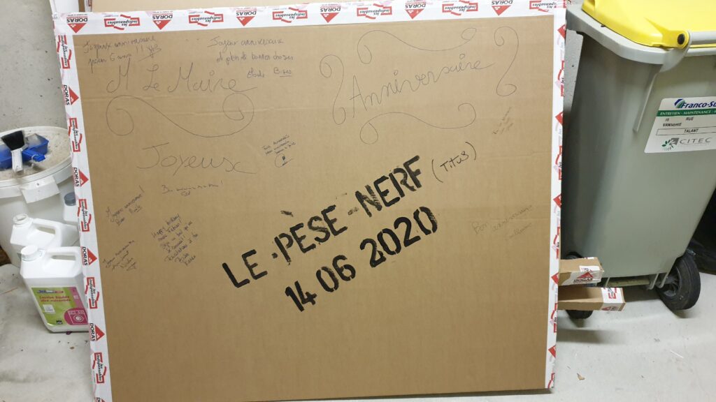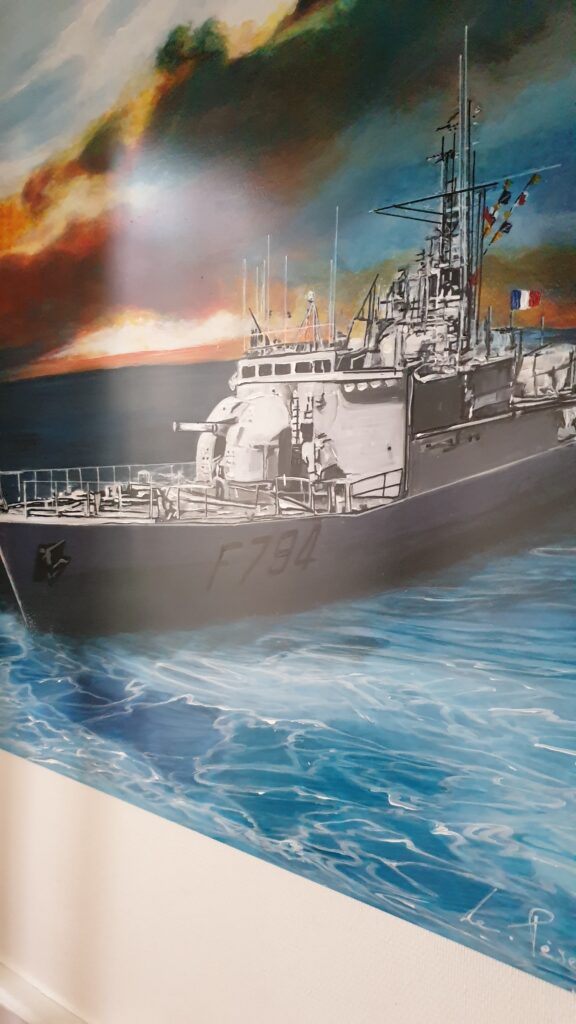 La deuxième photographie montre un tableau représentant un bâtiment de la Marine nationale, présenté par l’expéditeur comme le cadeau offert au maire à l’occasion de cet anniversaire. Le visuel ferait écho au passé militaire du maire, qui aurait servi dans la marine dans les années 1990. La troisième image laisse apparaître un emballage comportant des messages manuscrits de félicitations.