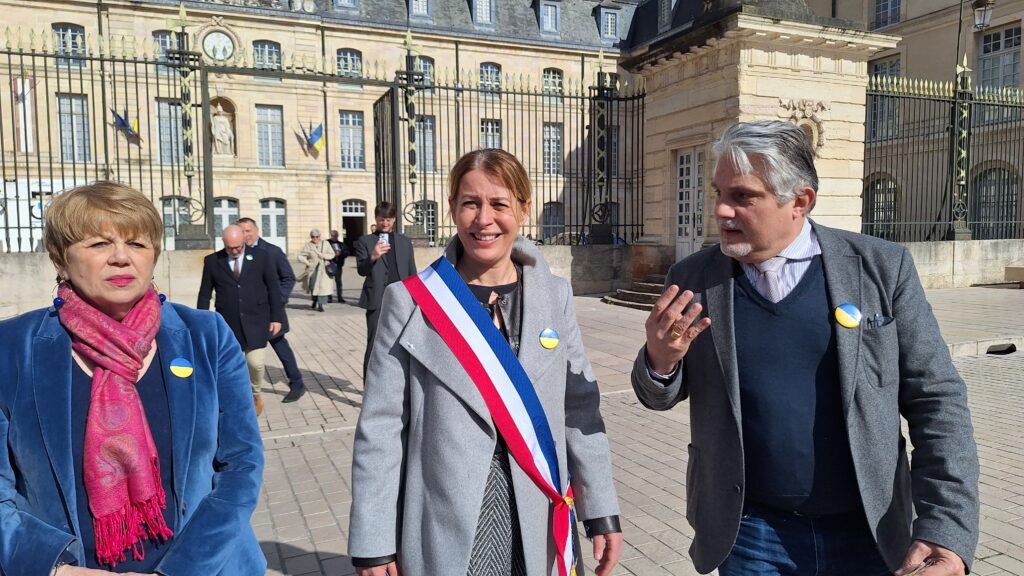 Concluant son intervention en s’adressant directement aux Ukrainiens présents, elle a déclaré : « Chers amis ukrainiens, tout Dijon vous exprime son soutien, sa solidarité et se tient à vos côtés dans ce long chemin vers la paix. La paix durable. La paix juste. »