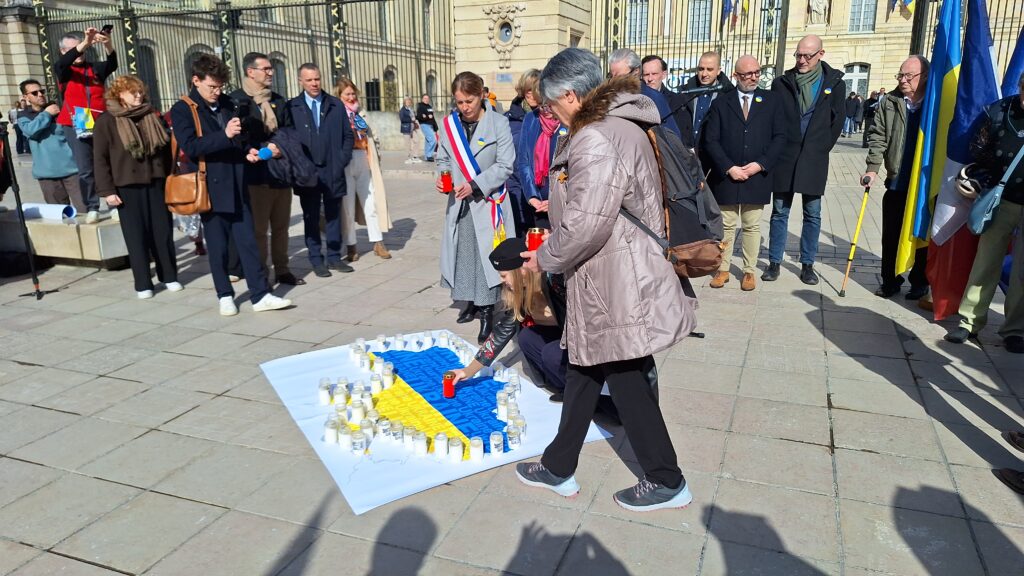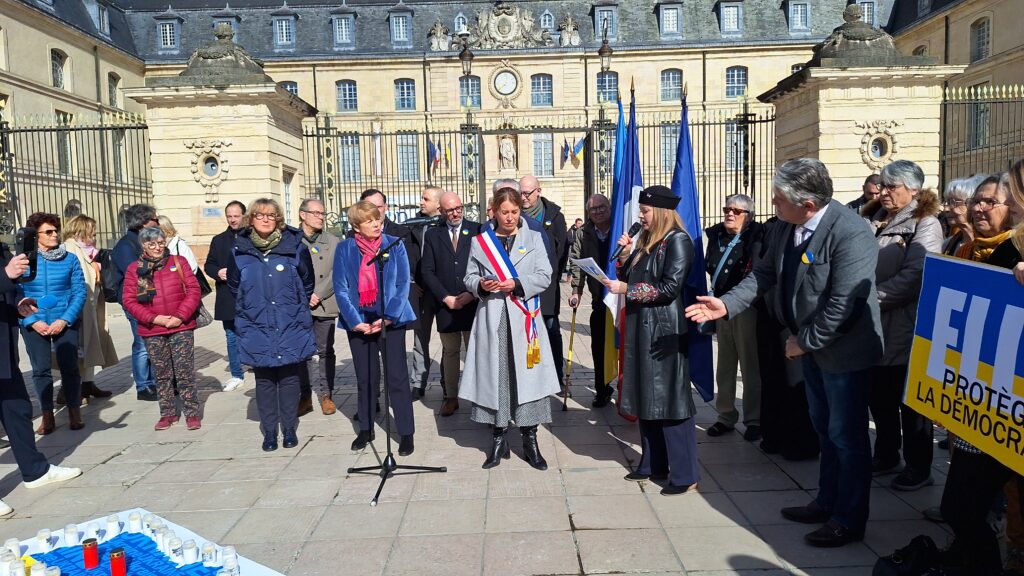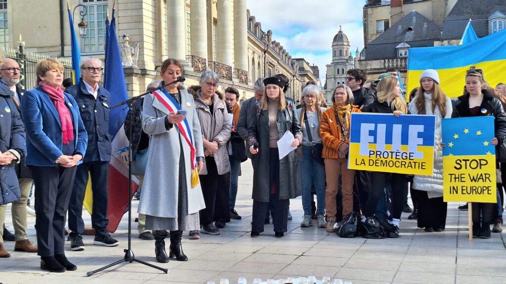 La maire de Dijon, Nathalie Koenders, a prononcé un discours empreint d’émotion et de gravité. « Le 24 février 2022, la Russie attaquait l’Ukraine, plongeant le pays dans une guerre aussi brutale qu’insensée. Quatre années plus tard, les Ukrainiens résistent, se battent, mais la violence russe continue de tuer, d’anéantir des existences et des familles », a-t-elle rappelé, évoquant les bombardements persistants et les attaques contre les infrastructures énergétiques qui privent des centaines de milliers de civils d’électricité et de chauffage en plein hiver.