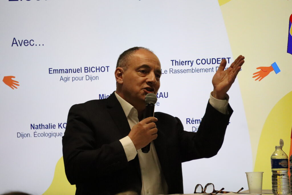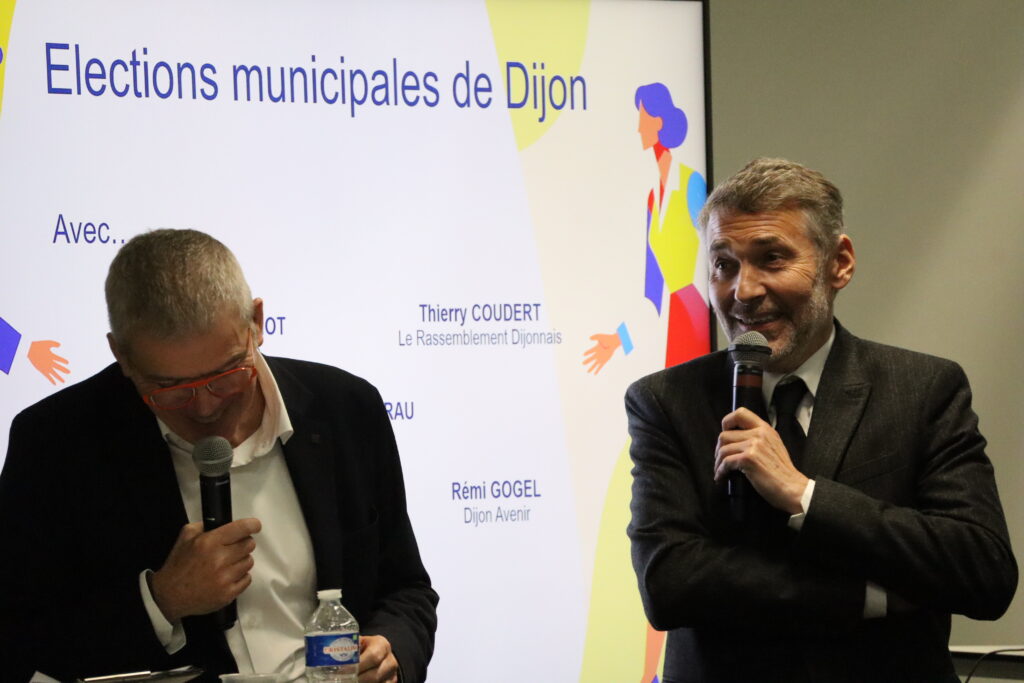 Cinq candidats ont répondu présent à l’invitation : Emmanuel Bichot (Agir pour Dijon – LR, Nouveau Centre, UDI, Horizons, soutenu par Reconquête!), Thierry Coudert (UDR, RN), Michel Haberstrau (Les Écologistes, PCF, L’Après, Génération.s), Nathalie Koenders (PS, MoDem, Place publique, Parti radical, Fédération progressiste) et Rémi Goguel (liste citoyenne). Tous ont accepté de confronter leurs visions et de détailler leurs priorités devant un public composé de chefs d’entreprise, d’artisans, de commerçants et d’indépendants.