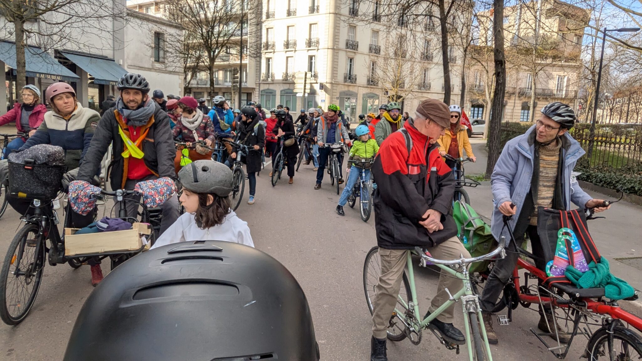 Samedi 28 février, près d’une centaine de cyclistes se sont réunis à Dijon pour participer à une “vélorution familiale” organisée par la liste Dijon change d’ère. L’événement, à la fois revendicatif et festif, avait pour objectif de mettre en lumière les difficultés rencontrées par les usagers du vélo dans la ville et de porter des propositions en faveur de mobilités plus durables et apaisées.