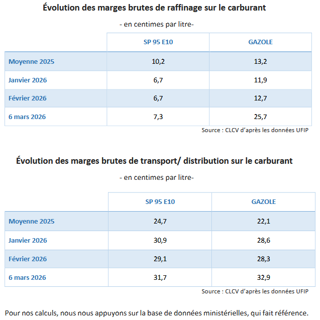L’association de consommateurs CLCV alerte sur une hausse significative des marges dans plusieurs maillons de la chaîne des carburants. Dans une analyse publiée ce mercredi, l’organisation souligne une augmentation des marges de transport et de distribution depuis le début de l’année 2026, ainsi qu’un rebond marqué des marges de raffinage, en particulier pour le gazole.
