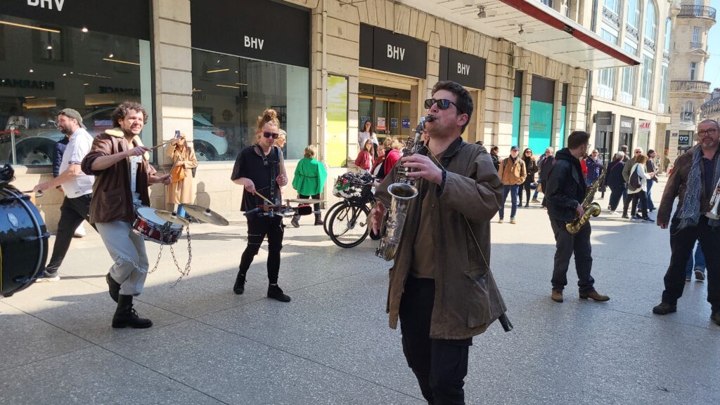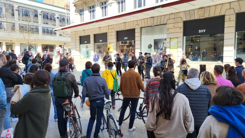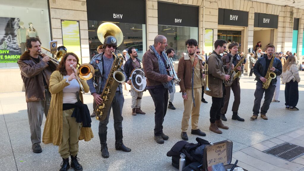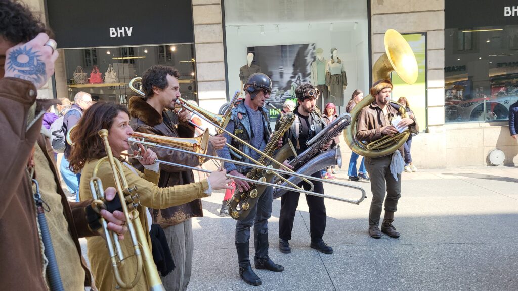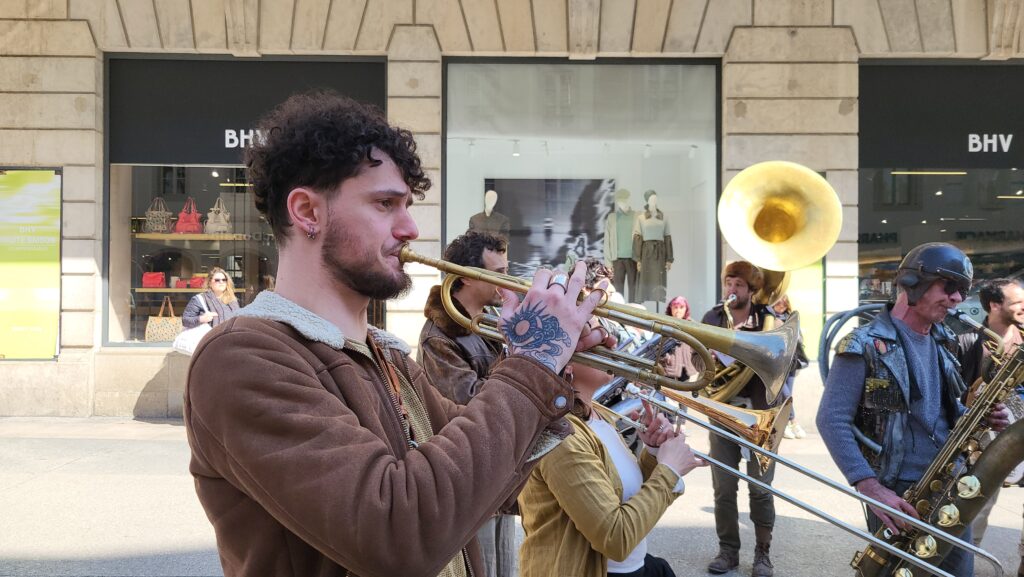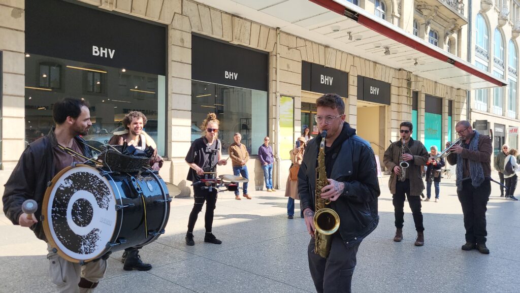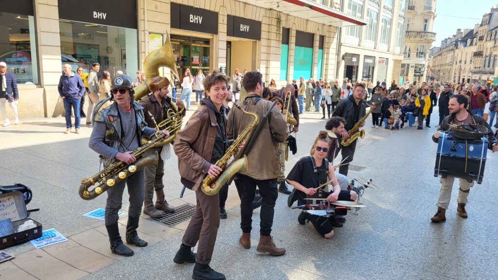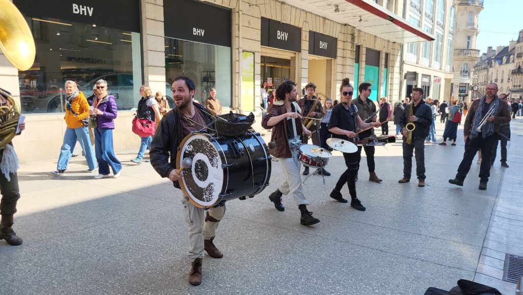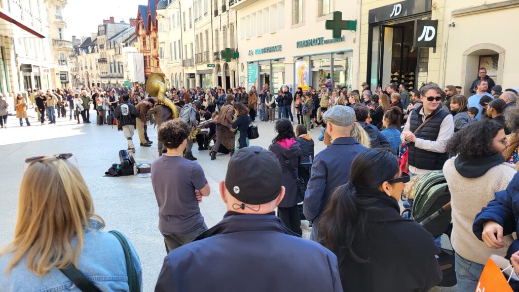 Rapidement, les badauds se sont laissés emporter par les sonorités puissantes et atypiques de cette formation pas comme les autres. Entre cuivres, percussions et instruments insolites, les treize musiciens et musiciennes ont su insuffler un souffle nouveau au centre-ville, redonnant « du boum au cœur des Dijonnais ». Un moment suspendu, où la musique a rassemblé petits et grands autour d’une expérience immersive et vivante.
