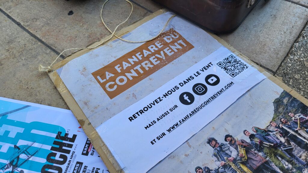 La Fanfare du Contrevent ne se contente pas de jouer : elle raconte une histoire. Inspirée librement de l’univers du roman La Horde du Contrevent d’Alain Damasio, la formation se présente comme une troupe venue d’ailleurs, portée par le vent et animée d’une énergie collective saisissante.
