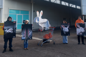 À l’occasion des soldes d’hiver, des militants de l’association de défense des animaux L214 se sont mobilisés devant le magasin…